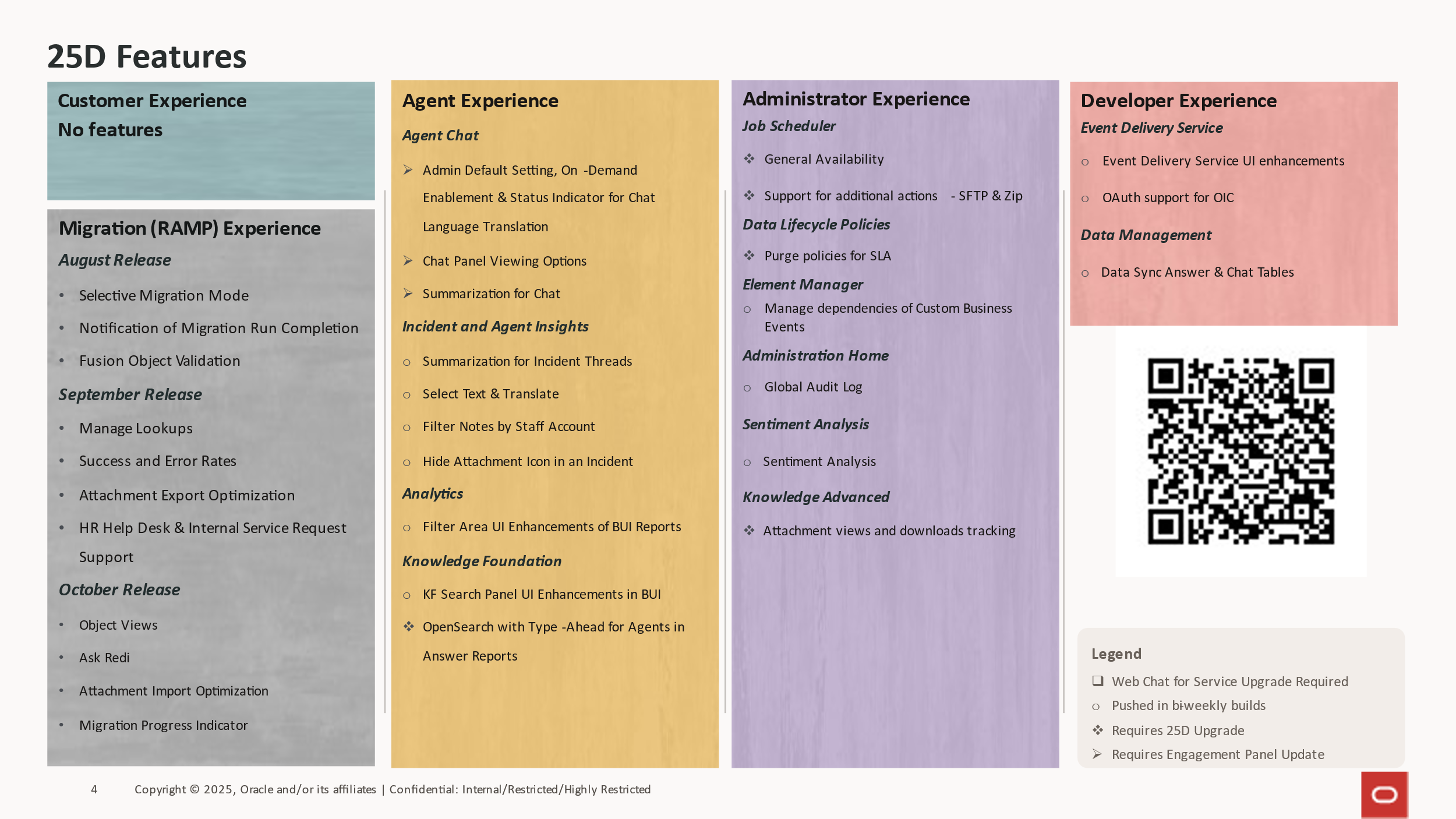 We are excited to announce the Oracle B2C Service 25D release, which introduces impactful enhancements for Agents, Administrators, Developers, and—new to our release announcements—the Migration Experience. The Migration Experience showcases exciting new features introduced through our recent RAMP to Fusion initiative, reflecting the progress and innovation we've achieved over the past quarter.